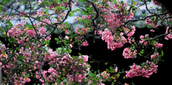 此时,园中紫薇竞相开放, “谁道花无百日红,紫薇长放半年花。” 离堆古园有“桩头六宝” 分别为张松银杏、紫薇花瓶、紫薇屏风、 玉瓶迎宾、乌龙出岫和紫薇佛掌 持续运转2200多年的千年水利, 默默无闻的守护着这片土地。 每每看到连绵山峦下安流顺轨的岷江, 都会被古人的治水智慧所震撼到。 “乘势利导,因时制宜”,看似平凡的背后,也正是它最可贵之处。