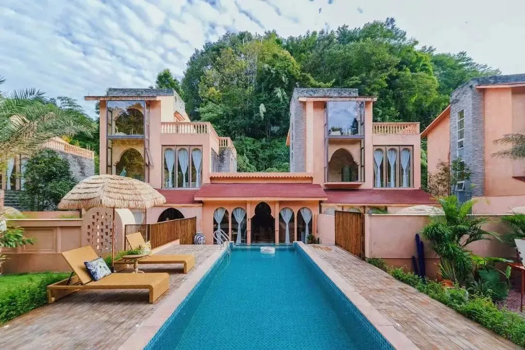 青城山又新出一宝藏民宿! 民宿主因为对摩洛哥的向往,把整个城市都帮你搬了过来!别墅共有三层,面积约230平,由一间宽敞的厨房、客厅、开放式饭厅、四间卧室(可入住8人)、一间书房、儿童玩乐区、私家泳池组成。