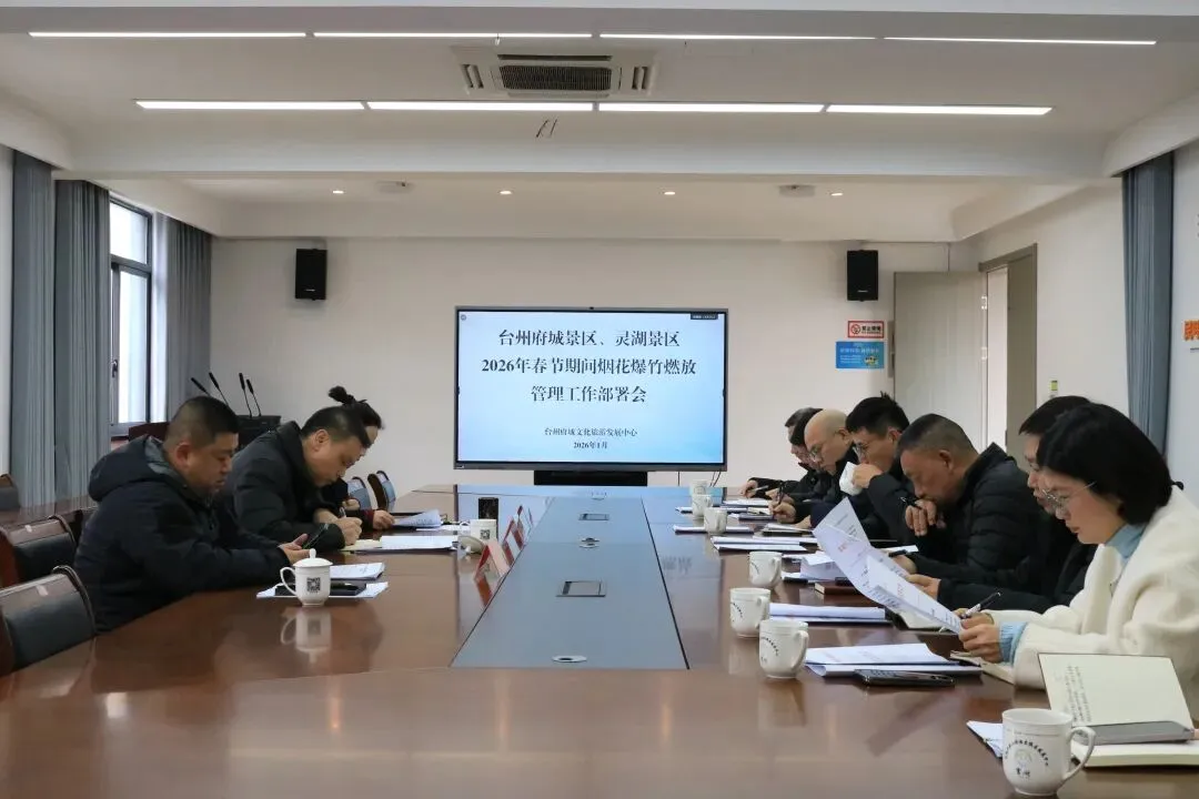 为切实做好春节期间烟花爆竹燃放管理工作,确保市民群众过一个欢乐、祥和、平安的新年。1月28日上午,台州府城文化旅游发展中心召开“台州府城景区、灵湖景区2026年春节期间烟花爆竹燃放管理工作部署会”。府城中心全体班子、相关中层及府城发展公司、灵湖旅游公司等相关负责人参加会议。