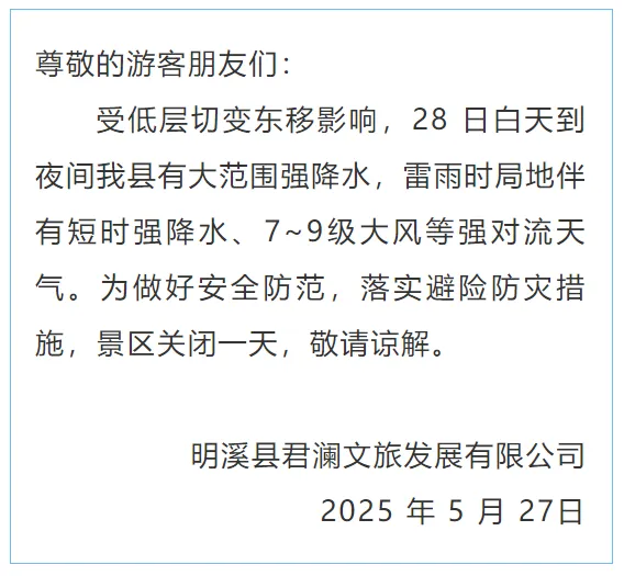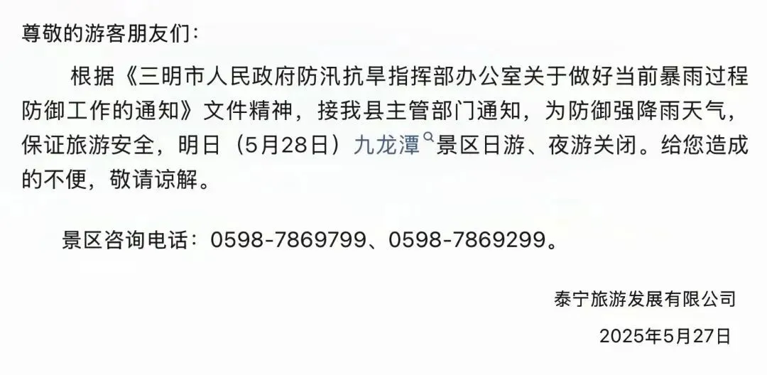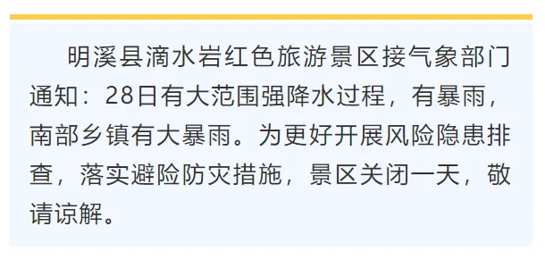 同时也提醒广大游客、村民朋友,面临突发天气,请减少出行,注意防范局地强降水可能引发的山洪、泥石流、城乡积涝、塌方和滑坡等次生灾害,注意自身安全。