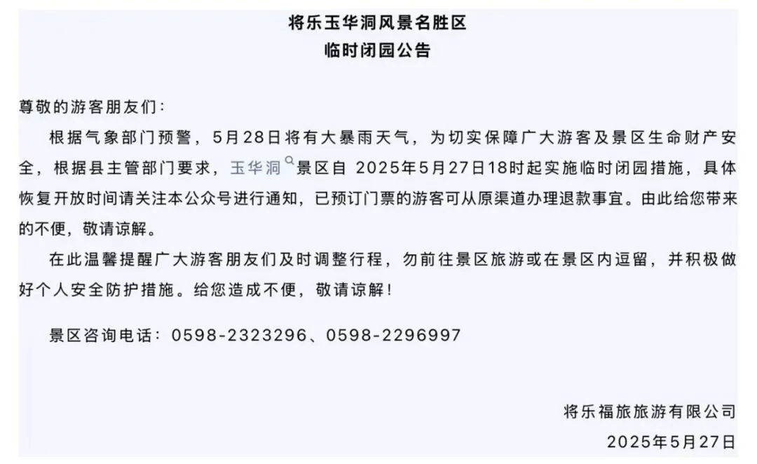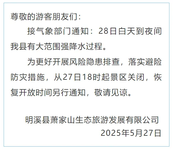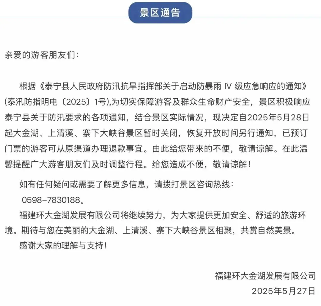 受近期强降雨影响,为确保广大游客生命财产安全,江山镇国家森林公园、无人村、山塘兵工厂、村美登山步道、黄连盂等景区和非景区景点暂停对外开放,请游客切勿前来游玩。