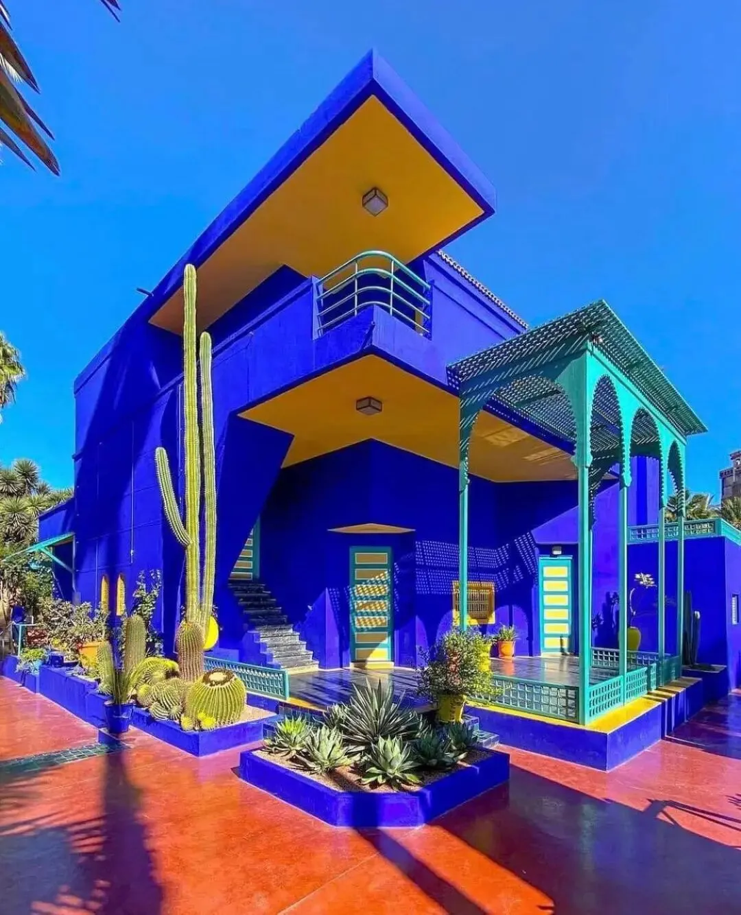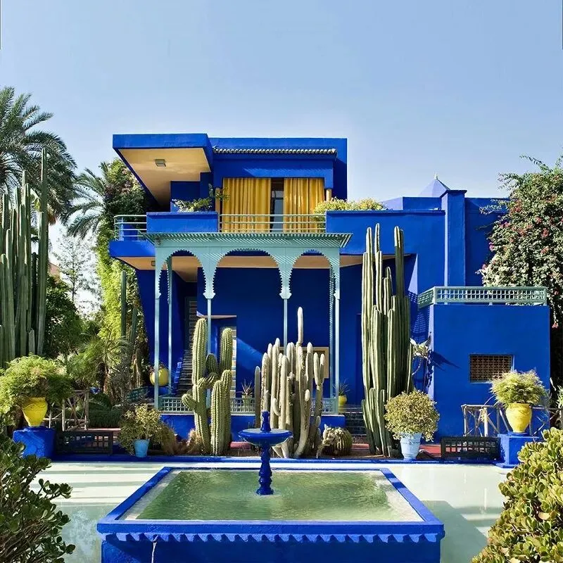 由法国画家马洛雷尔设计,园内遍植棕榈树、仙人掌与灌木,蓝色小屋曾是画家的工作室。后来由YSL集团购入并重新规划,成为如今色彩缤纷的花园。园内的YSL博物馆于2024年开放,展示伊夫·圣罗兰的生平、手稿与高级定制服装。