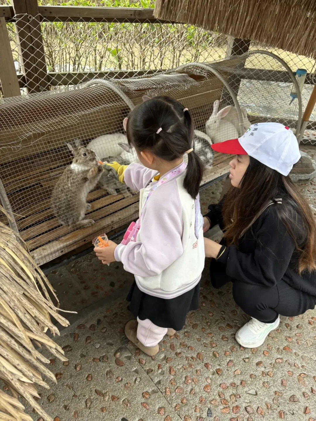 10点钟首先去的是萌宠乐园,你妈妈花了10块钱买了一小袋的胡萝卜,看看马,喂喂马(这个害怕不敢喂),看看兔子,喂喂兔子,看看土拨鼠(喂喂小猪,其实是鼠的的一种),看看刺猬,摸摸刺猬,看看羊驼,看看鸭子,看看鹦鹉等等,最后还是回去喂了兔子,把胡萝卜喂完。穿上手套,刚开始还不敢喂兔子,不停的给你鼓励,越喂越喜欢。