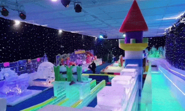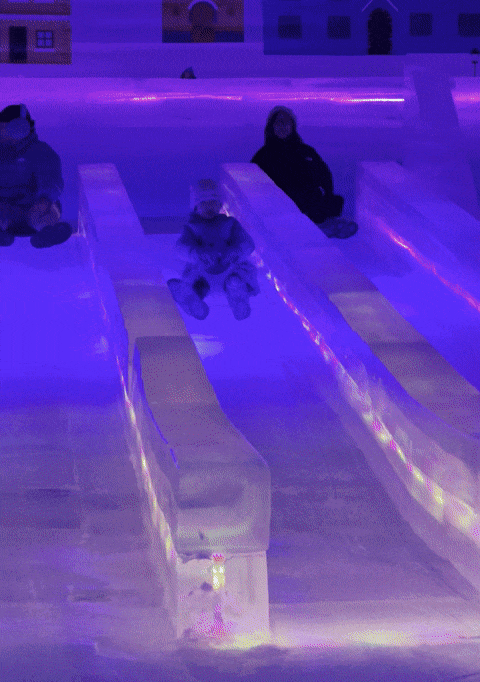 还可以走上50米长的冰灯滑梯