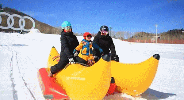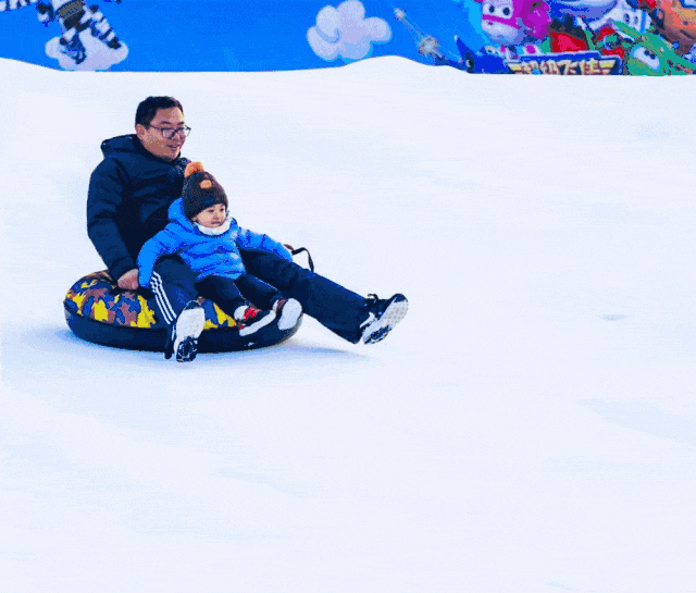 坐在柔软的雪圈里,在雪道上疾驰而下