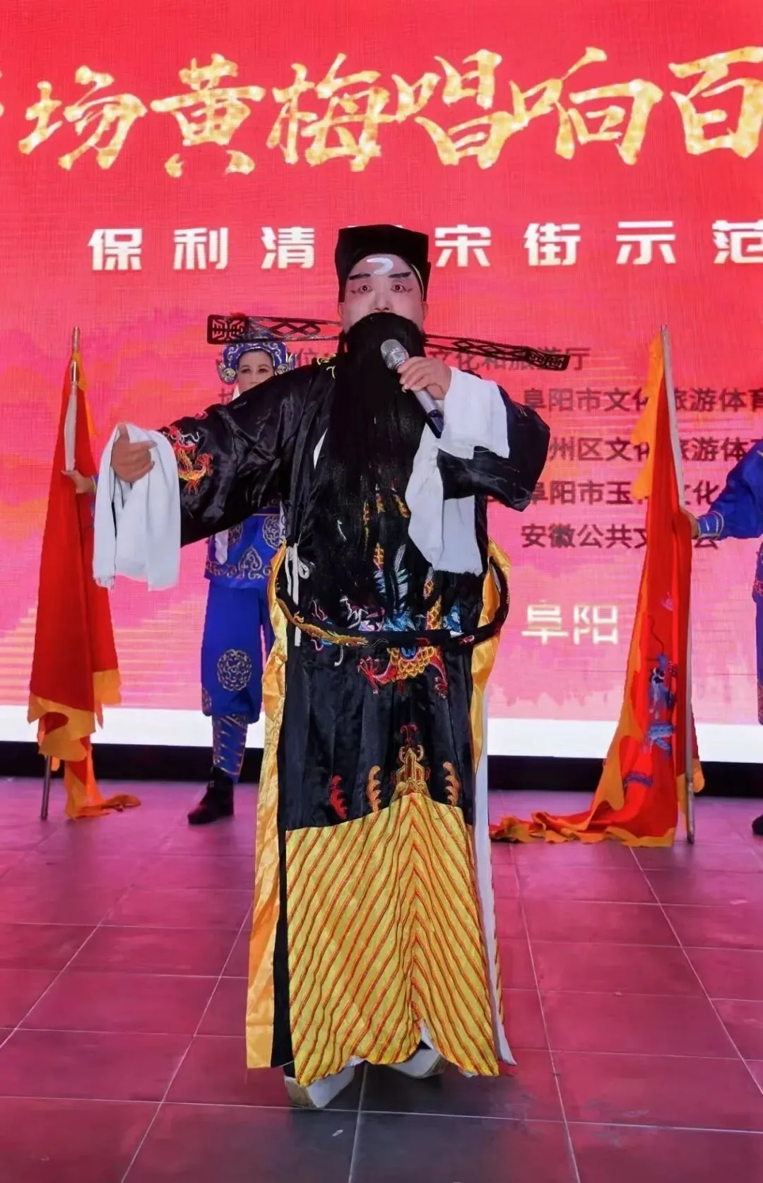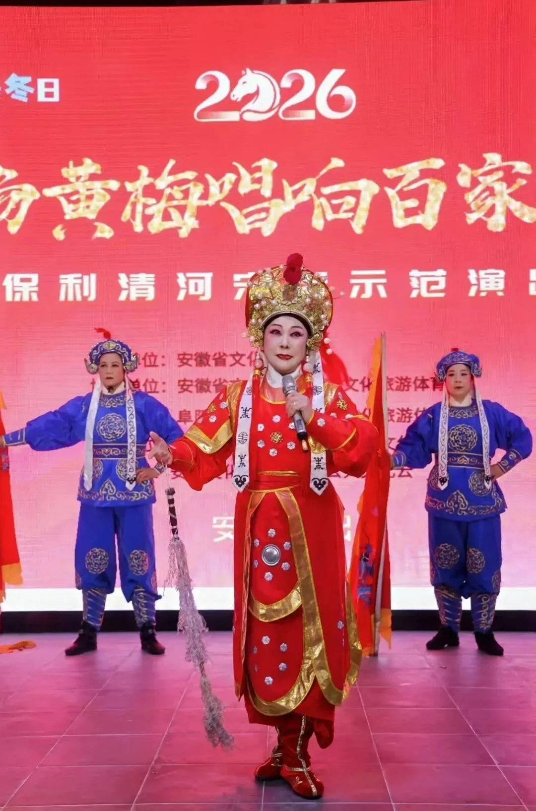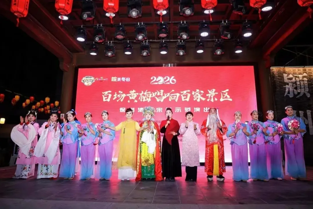 2026年1月24日,由安徽省文化和旅游厅主办,安徽省文化馆、阜阳市文化旅游体育局协办,阜阳市文化馆、颍州区文化旅游体育局承办的“百场黄梅唱响百家景区”保利清河宋街示范演出在热烈氛围中拉开帷幕。