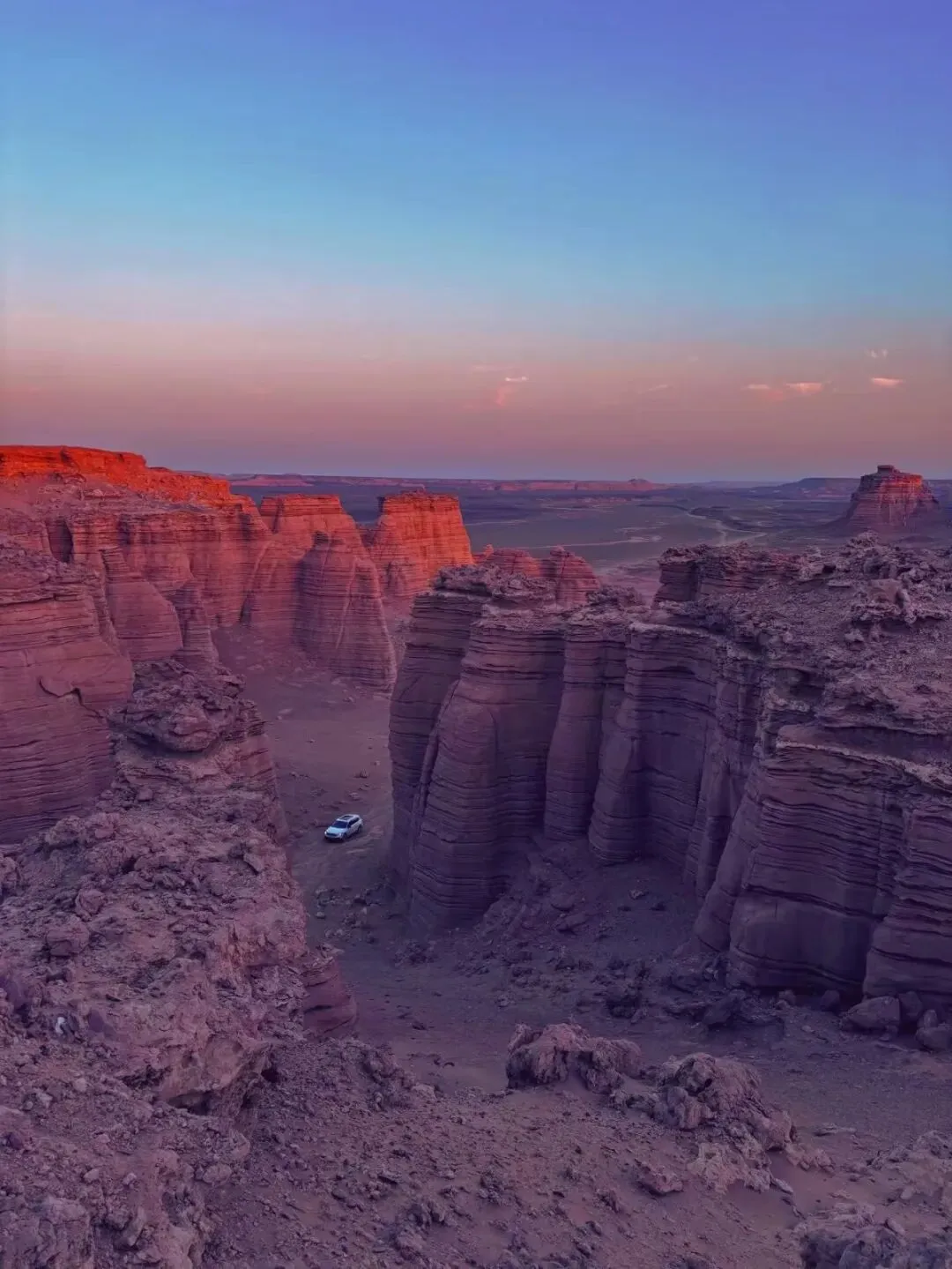 这是一片充满神秘色彩的雅丹地貌裙,仿佛是火星表面的奇幻世界,亿万年的地质变迁造就了这里独特的景观。