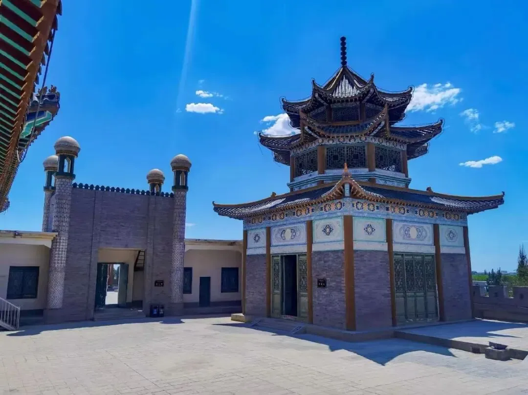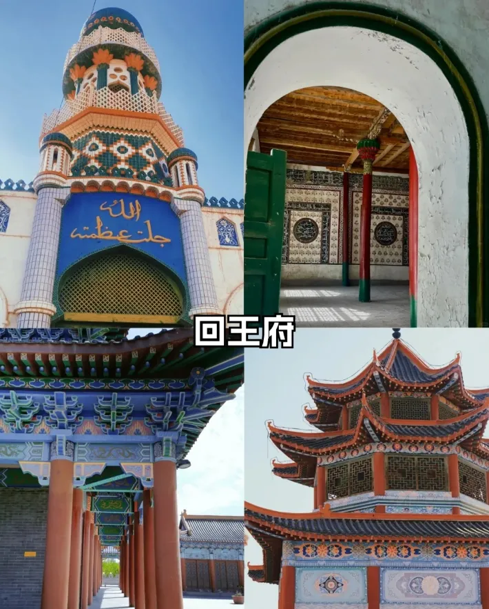 光绪八年(1882 年),九世回王沙木胡索特袭位后,对王府进行了扩建和翻修。扩建后的王府面积占回城的四分之一,有房 800 多间,大小九道门楼。正门楼为中西合璧结构,飞檐起脊,画栋雕梁,绿琉璃瓦顶。整体建筑分为内外二宫,内宫地面与城墙同高,外形是城楼式的宫殿。王府内还有三座规模不同、风格各异的清真寺,以及设计精巧、具有江南园林风格的小花园。