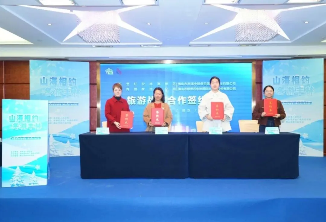 推介会现场气氛热烈,佛山旅游业界对这片北国冰雪森林表现出浓厚兴趣。在与会嘉宾见证下,五营红松景区与佛山南海中旅旅行社正式签署战略合作协议。双方将围绕客源输送、产品定制、宣传推广、服务保障等方面开展深度合作。佛山南海中旅将把五营红松景区纳入其冬季及全年重点推荐线路,组织系列旅游团队前往伊春,助力打通“粤客北上”冰雪旅游通道。