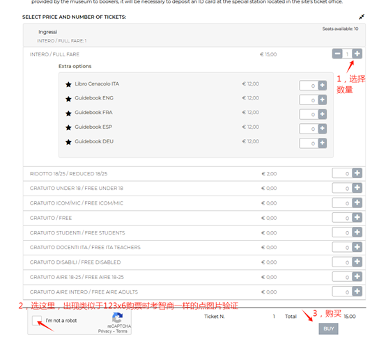 作为英文意大利文都应该是没法听得懂那么多认知以外的知识的人来说,刷票是必须的。想查看那个时段还有多少张票的,在选择票类型的位置看“seats available”,这样你也能大概猜到大概啥时候能放纯门票的票出来。
