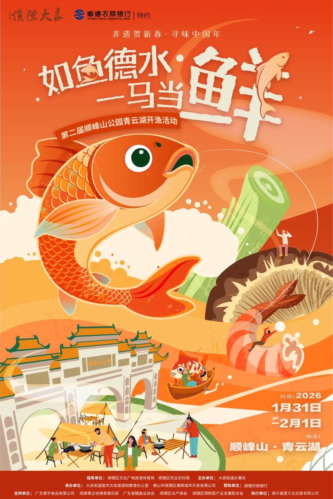 大良街道顺峰山公园开渔活动(1月31日-2月1日) → 顺德南宏海洋公园新春研学行(1月31日-2月1日)→ 伦教街道乌洲水闸落羽杉缤纷赏玩季(1月31日-2月1日)
