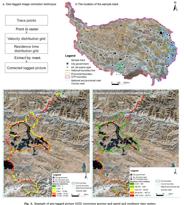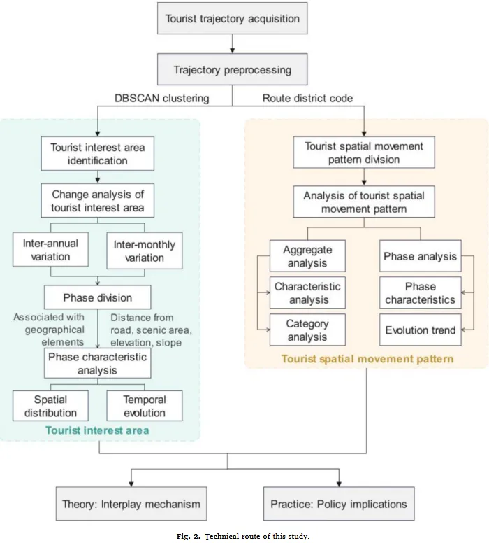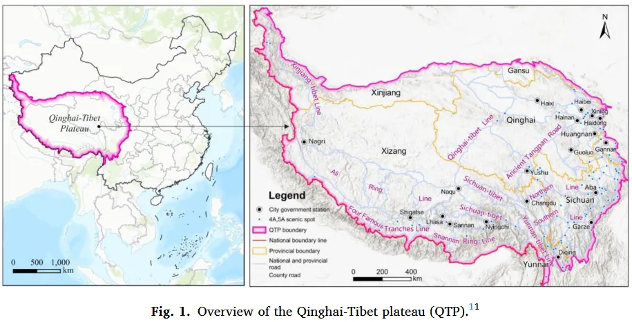 数据来源:研究使用了来自中国两大全球定位系统轨迹记录平台(六只脚和两步路)的游客自驾轨迹数据,涵盖了青藏高原六个省份的超过20,000条轨迹数据点。同时,结合了交通路网、景点位置、数字高程模型(30米分辨率)和坡度数据,确保分析的全面性和准确性。