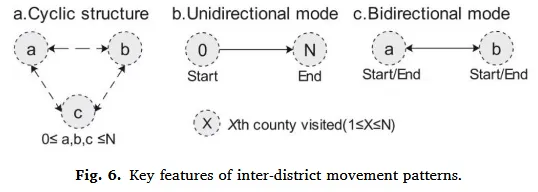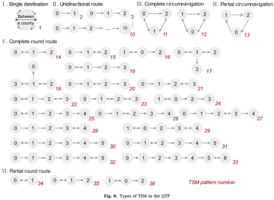 游客空间移动模式分析:基于游客经过的县区顺序,识别并分析游客空间移动模式的特点和阶段变化,包括单目的地模式、往返模式、基地营模式等,揭示游客在高原地区的移动规律。