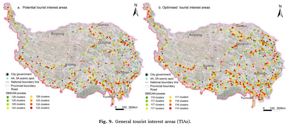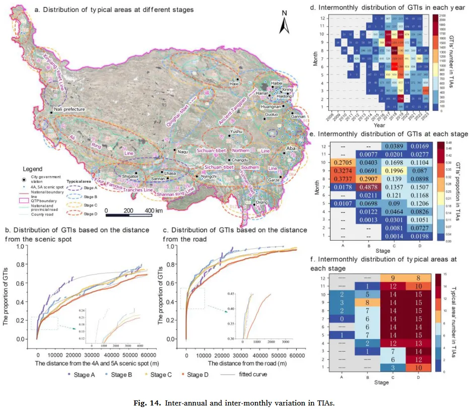 旅游兴趣区说明了在消费者偏好不断变化的情况下,群体在选择旅游目的地时决策的空间导向。通过将旅游停留区与OPTICS优化的DBSCAN聚类技术相结合,确定了旅游兴趣区,并分析了其年和空间方向。进一步研究了年际和月际变化,同时生成轨迹运动图,以阐明游客的空间运动模式。研究结果表明,研究期间,青藏高原旅游兴趣区从突出景区和热门城市周围的分散分布转变为主要交通路线沿线的非景区和边境地区。这些集中在海拔 3000 米至 4500 米之间、半径 60 公里内的国道和省道沿线。随着节点从孤立点演变为高频网络,年际变化的频率持续增加。游客空间移动模式的变化是对旅游兴趣区域的动态响应。这一发现扩展了经典LCF在高原地区的适用性,并在此基础上创新性地提出了高原旅游空间交互模型。研究结果为优化青藏高原空间规划和开发世界级旅游目的地提供了重要启示。