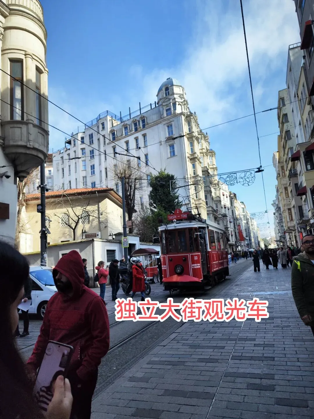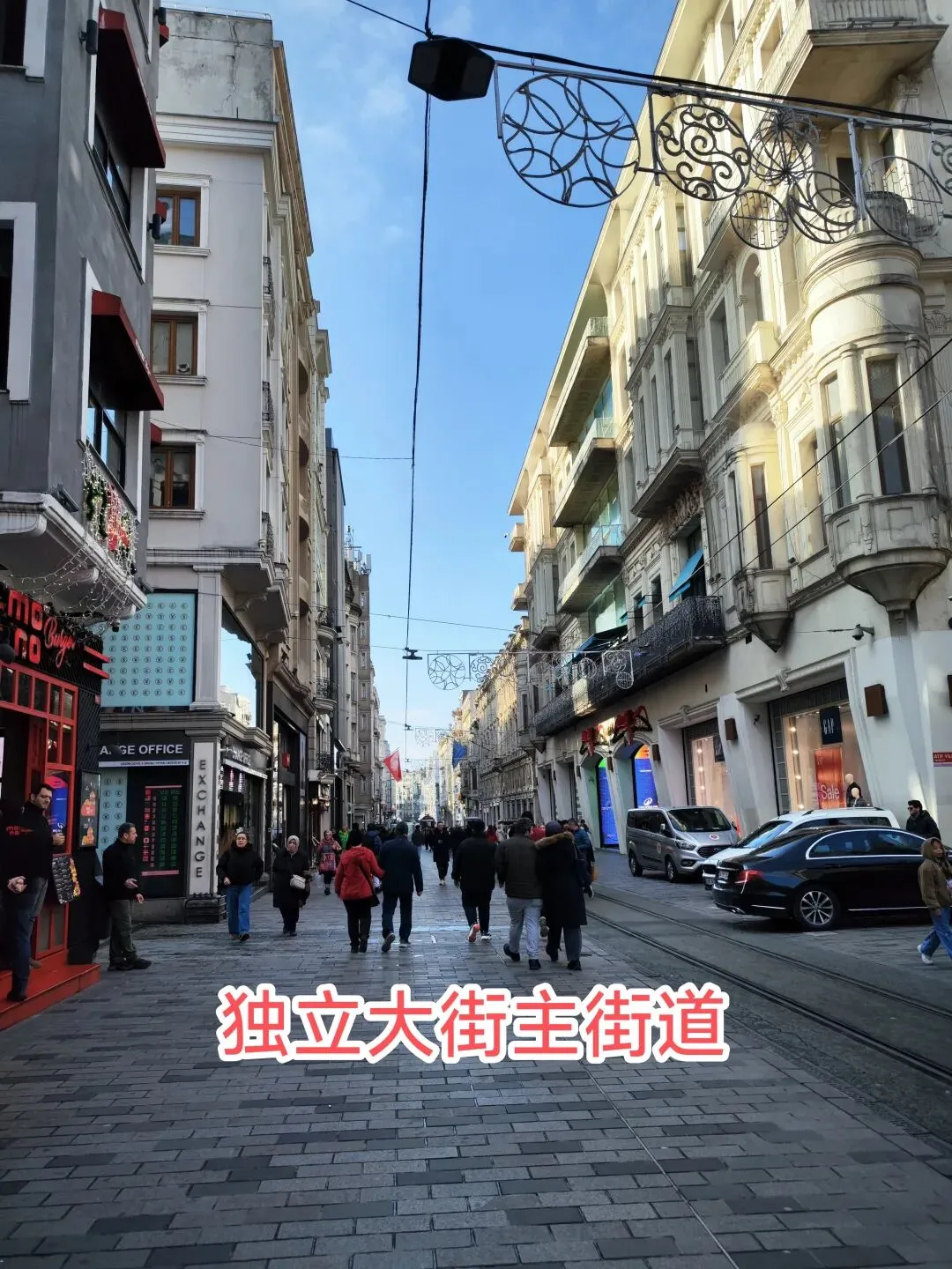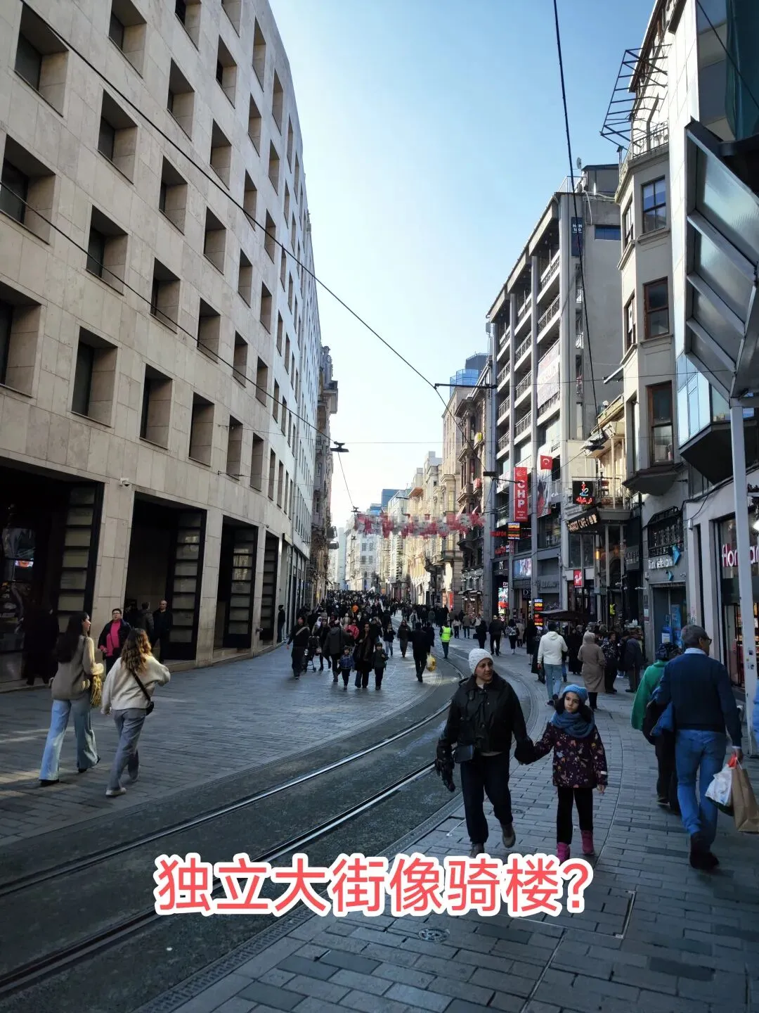 被称作伊斯坦布尔的“香榭大道”。这条长约3公里的步行街两侧分布着各色教堂、各国领馆、著名饭店等,还有诸多精品店、音乐商店、书店、咖啡厅、香水店等。