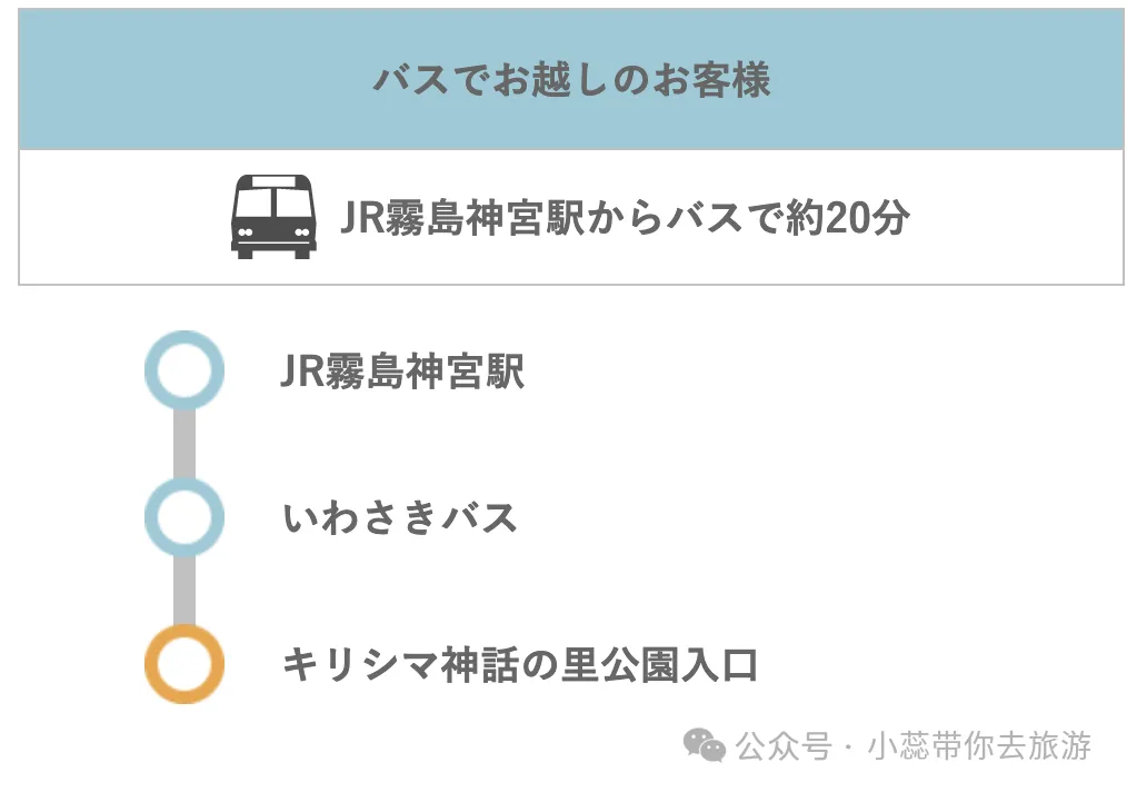 可以先从鹿儿岛中央乘坐新干线到达鹿岛神宫站,然后在转巴士即可到达雾岛的其他景点
