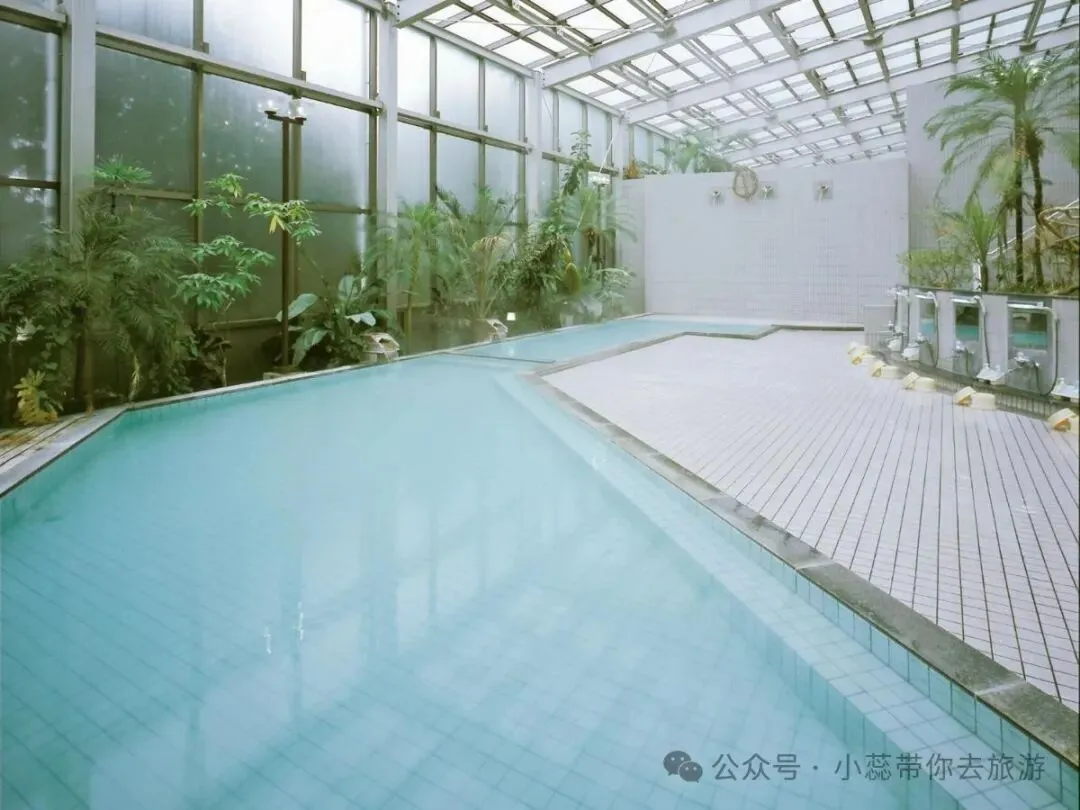 饭店的温泉所有浴池皆使用100%天然温泉水,大浴场采用落地玻璃设计,还设有从高处落下的水柱淋浴“冲打汤”与桑拿设施。露天温泉也在翠绿树林的环绕下,能边泡汤边沉浸于大自然的气息中。
