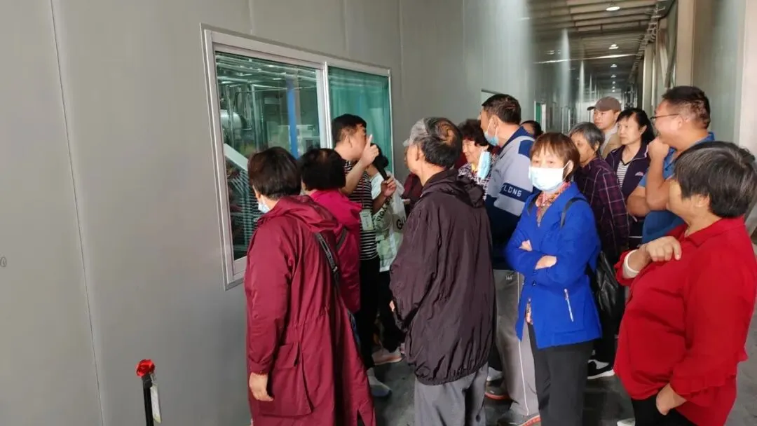 (游客在透过窗口了解沙棘系列产品的生产过程)