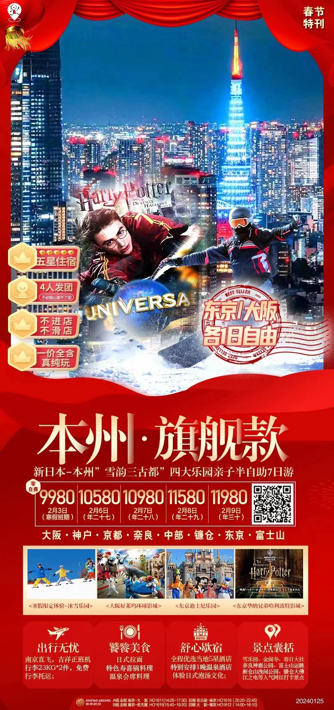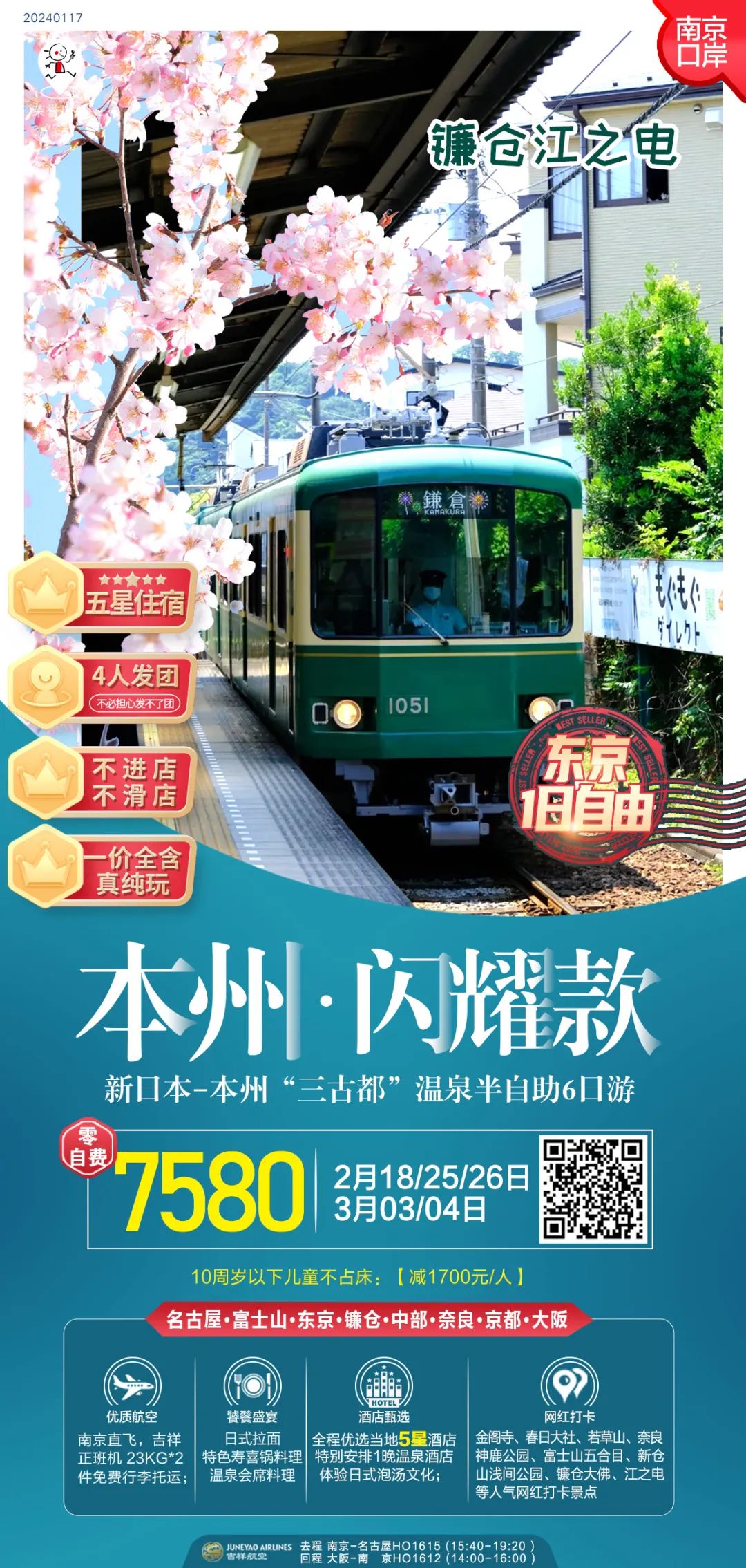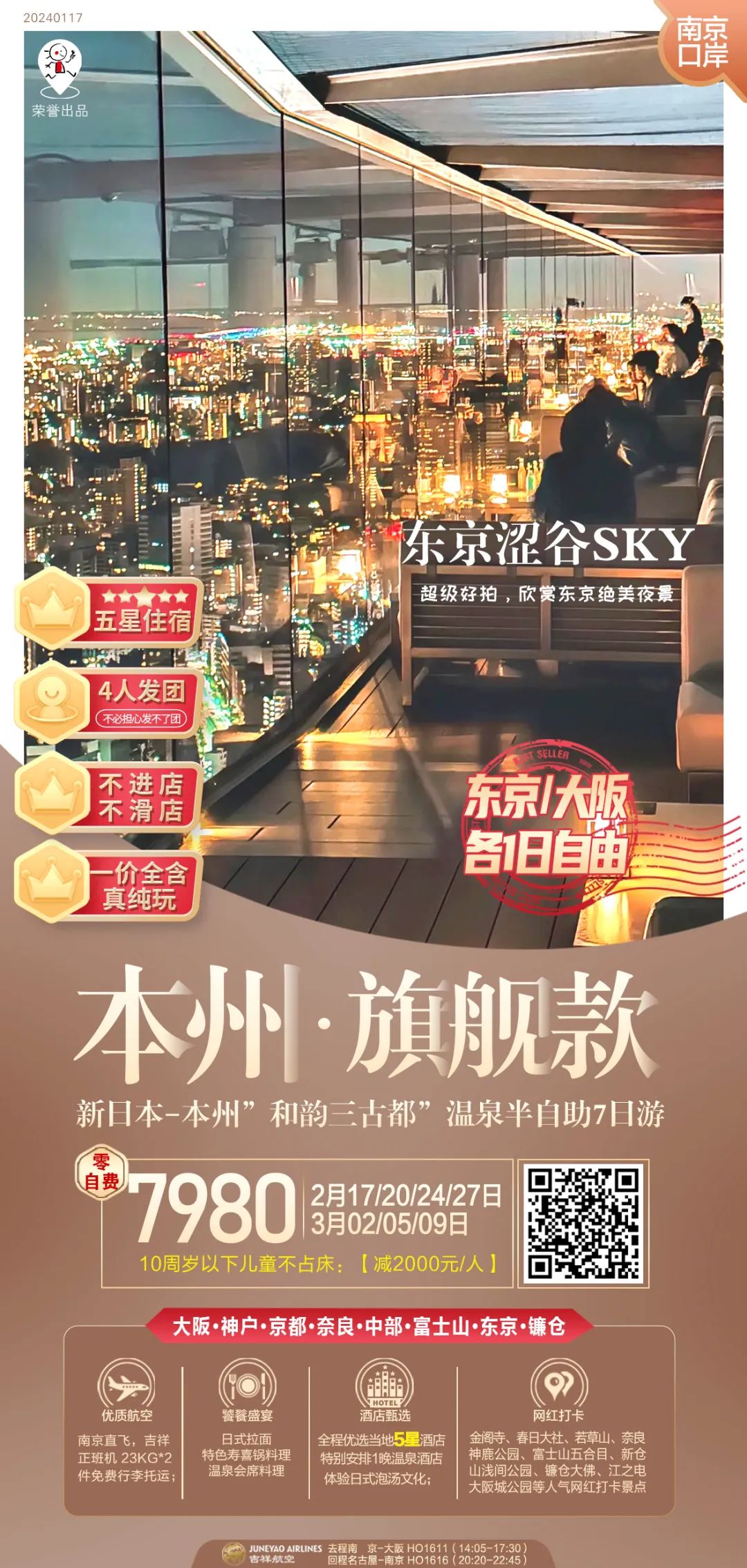 旗舰:本州7天,无领队,东京/大阪各一日自由
