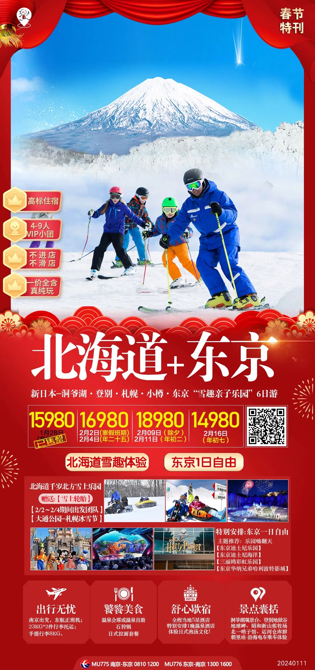 北海道+东京6日,其中东京1日自由,满4人就发团