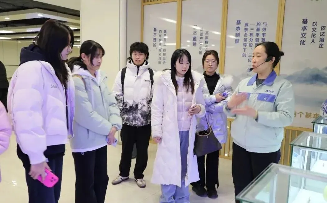 在明泉之源展厅,学生们在讲解员的引导下,系统了解了企业的发展历程、产业布局、创新成果以及独具特色的企业文化,让抽象的工业企业发展史变得可触可感。
