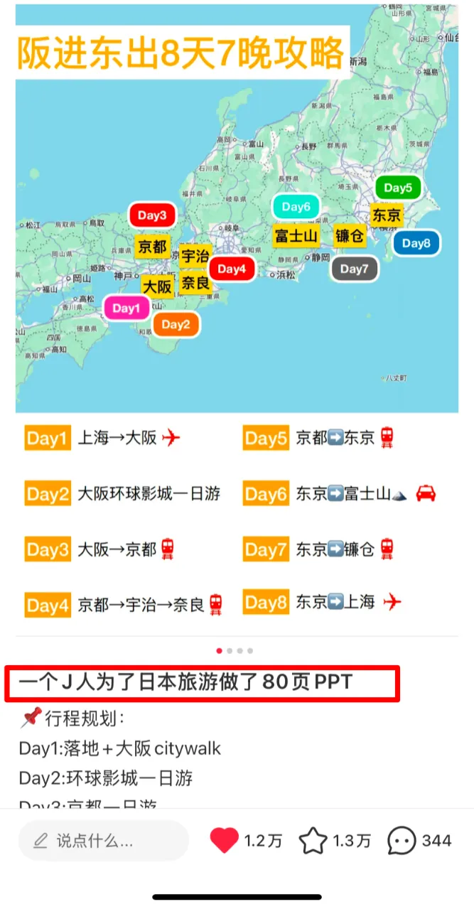 接着,是标题【为了日本旅游做了80页PPT】,假如,你是想去日本旅游的,看到这个标题,是不是也想点进去看下?