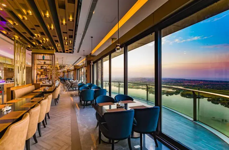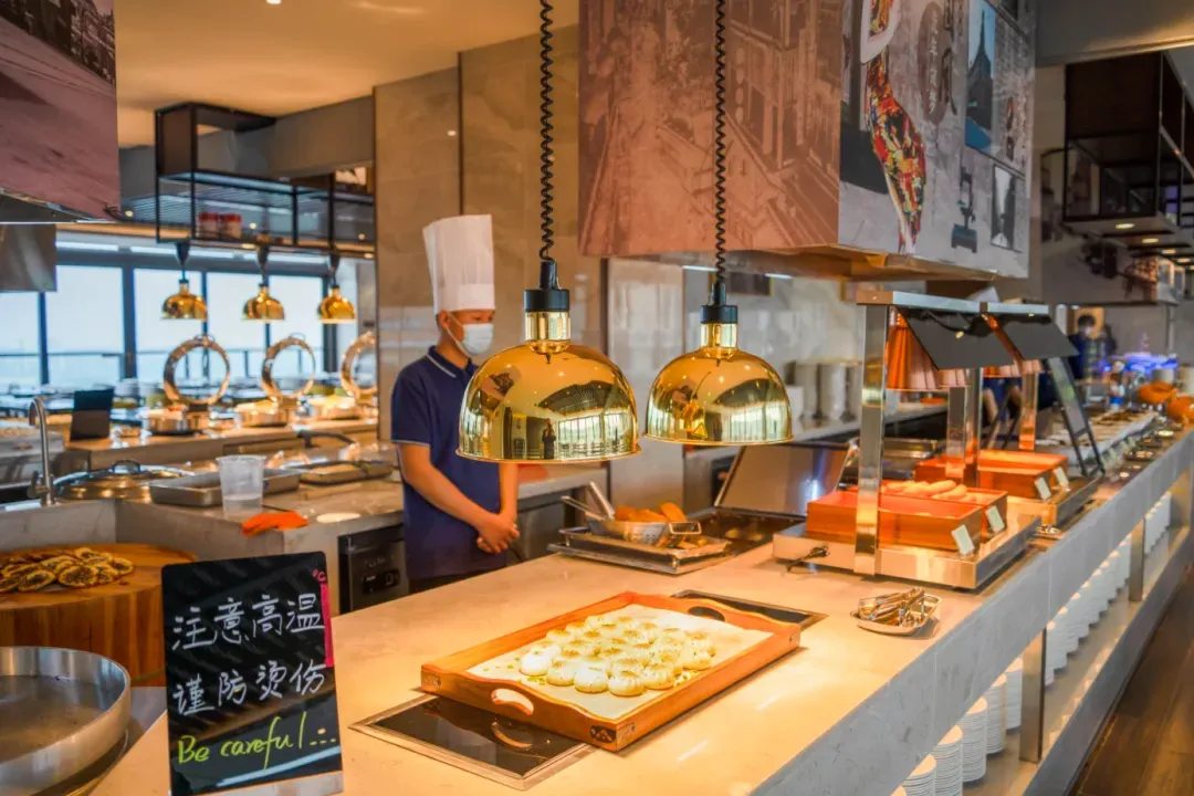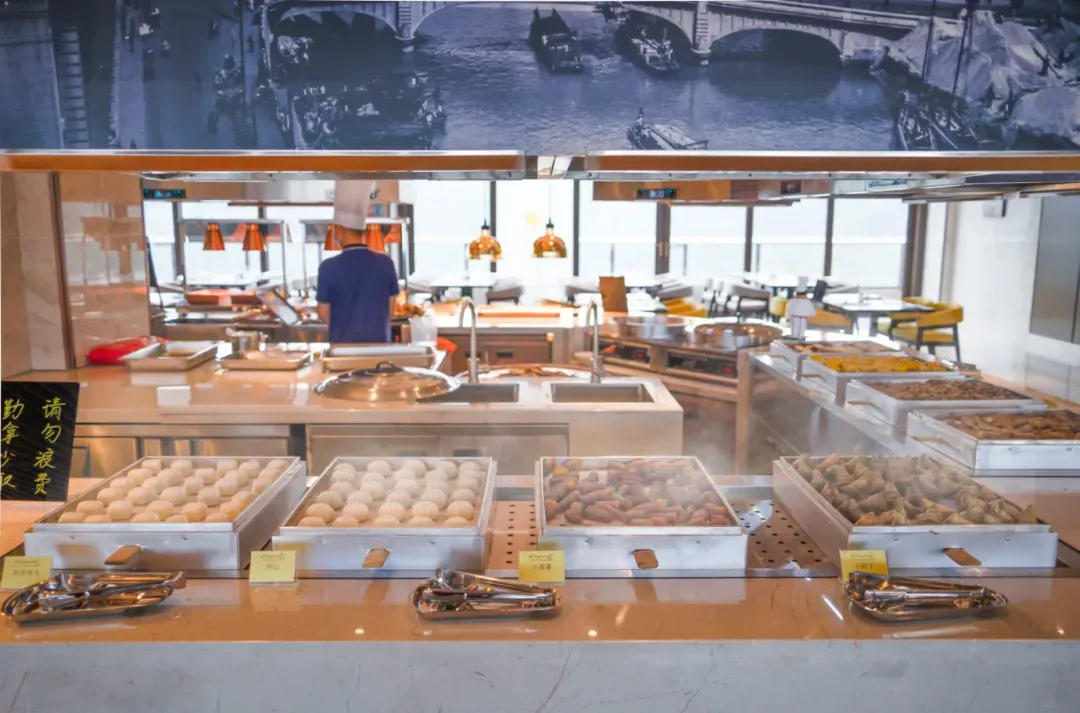 位于酒店27楼的自助餐厅,合计拥有1300个餐位,一面湖景,可俯瞰湿地风格,远眺太湖风光,如绿宝石一般的圆梦潭尽收眼底。