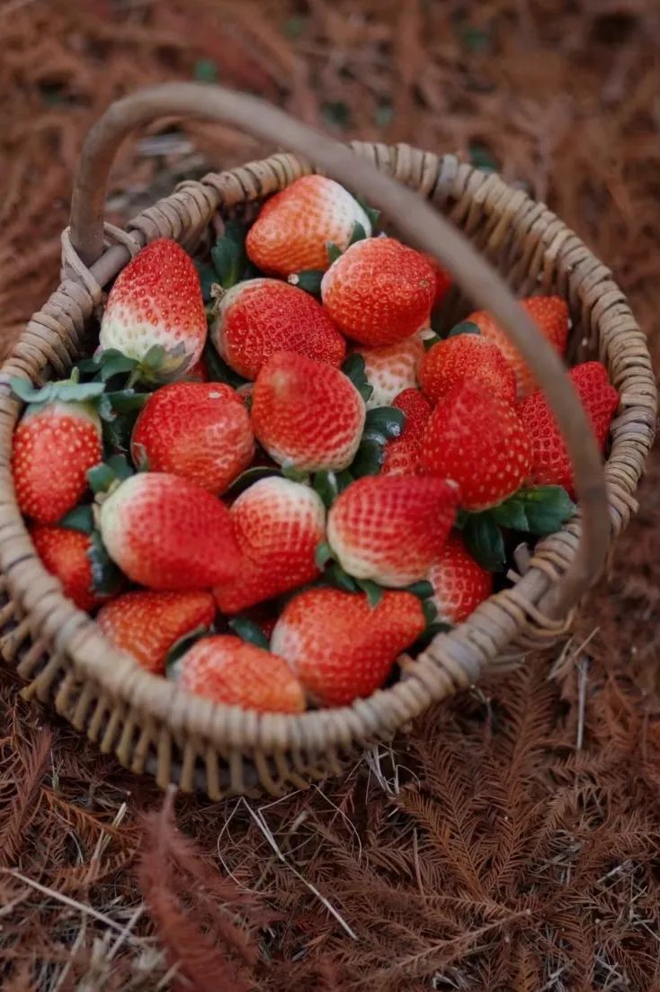 村路两侧有成排的红杉林立,村子修的也干净古朴。不同季节有不同的瓜果采摘,这个季节最适合采摘的就是草莓啦,保证新鲜?