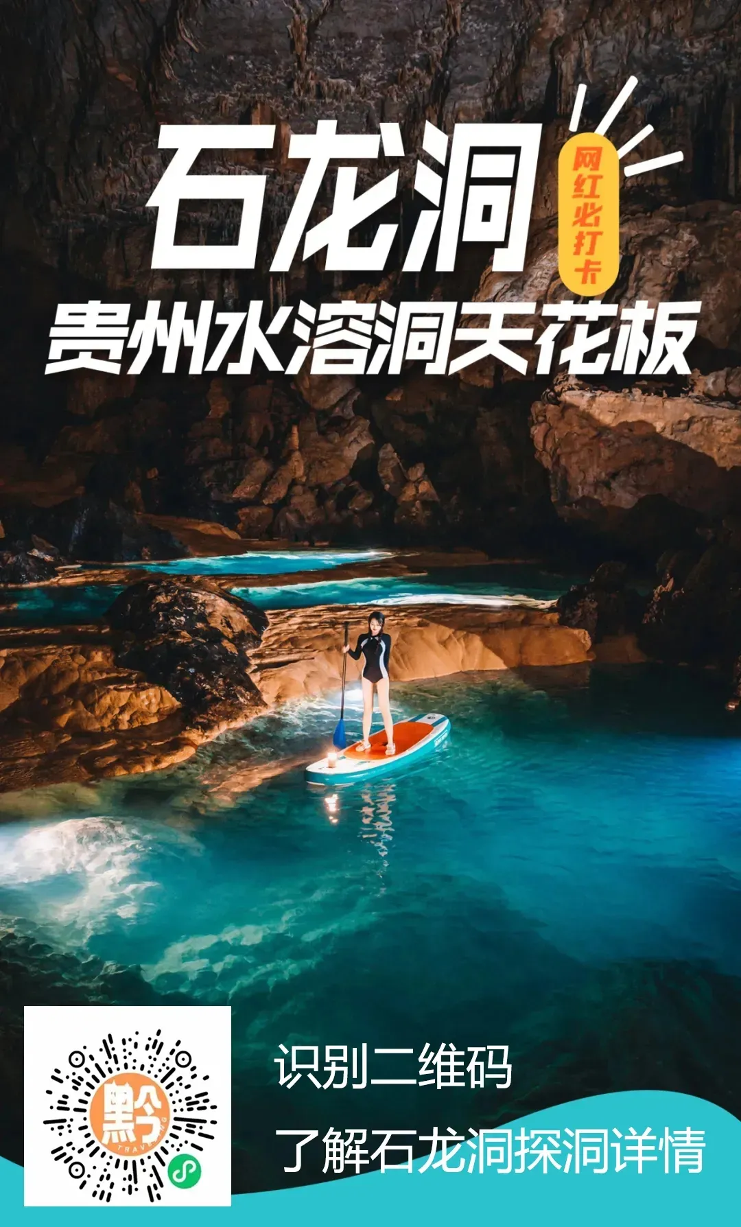 石龙洞位于贵阳市清镇麦格乡,总长度10公里。石龙洞是一个水溶洞,有一条溪流从溶洞穿过。洞内有大量的梯级水潭,犹如“地下瑶池”,是梯级钙化池最具代表性的原生态喀斯特水溶洞之一。考察已经探访的10公里就有绿滩30多个,有大规模成片的石笋群10多处;有规模成片的钙化池数十处。目前,石龙洞已经打造为洞穴桨板、旅拍的圣地。