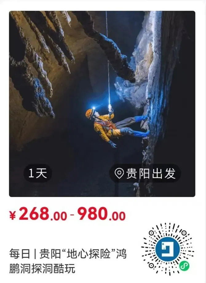 鸿鹏洞位于贵阳市郊区,溶洞是旱溶洞和水溶洞结合,洞内遍布形态各异的钟乳石,部分石笋高度可达百米,形成独特的地下石林景观。 洞穴中存在大量天然穴珠,这些由水滴长期滴落形成的碳酸钙沉积物,呈现葡萄串状结构。溶洞探秘全程3~4小时,包括体验SRT攀爬,运气好的话还能看到洞穴盲鱼和蝙蝠大厅的震撼景象。
