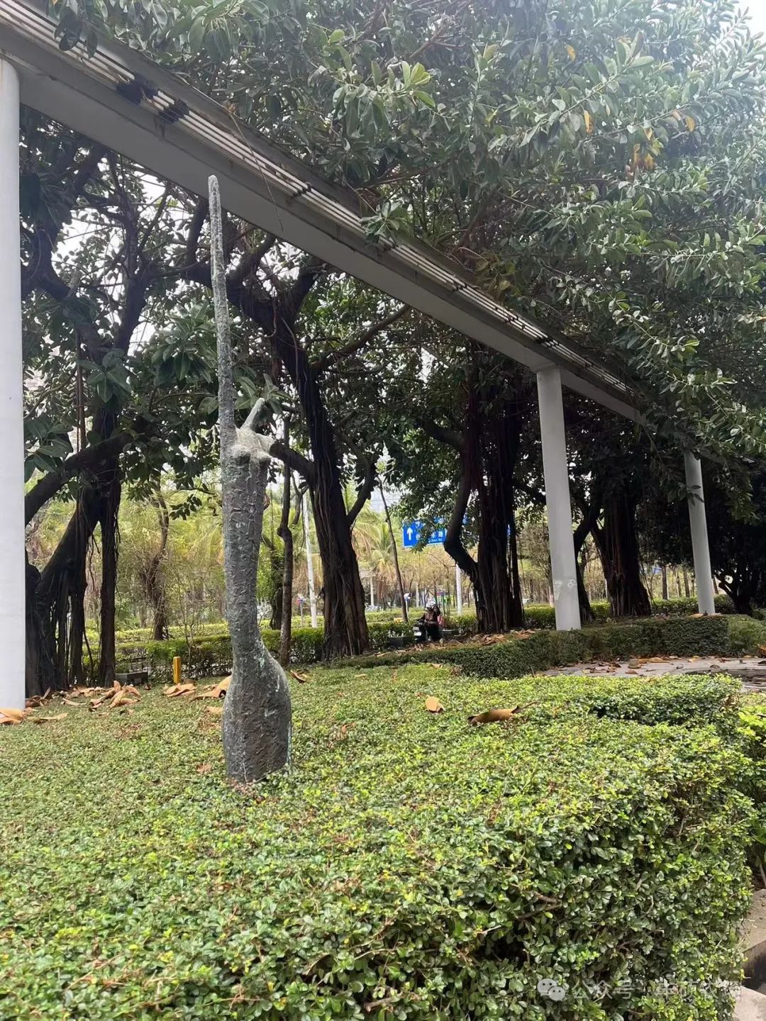 出得馆来,看看时间尚早,而街道也透出一历史感出来,你没听错:就是历史感!我印象中,深圳一直是新的,没有历史的地方,它拥有的仅是繁华热闹而已。但我踱步在这旁边的街道上,你看那有着年轮感的树木,以各种造型装点着这城市;旁边这一尊尊雕像,表面斑驳的痕迹,八九十年代的造型,传达出深圳人的奋斗生活精神,也是当时改革开放的一种精神;而旁边的这些游乐设施,明显是已废弃很久,有些也已停用了很久,但它就是留存在那里,显示过它曾忙碌而繁华的过往,将军老矣,而精神永在;看看这旁边普通的建筑,有着霸气的名字:天街!也明明确确得告诉你,它当年的辉煌,它就在世界之窗和民俗村之间,位置优越,当得起此殊荣.