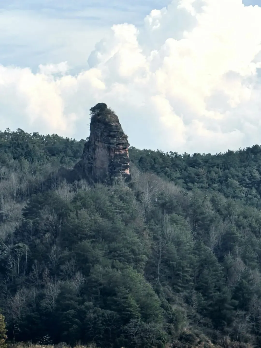 这个景就像一个戴着头盔的古代将军,下面山体是将军雄伟的身躯,驻守着边疆