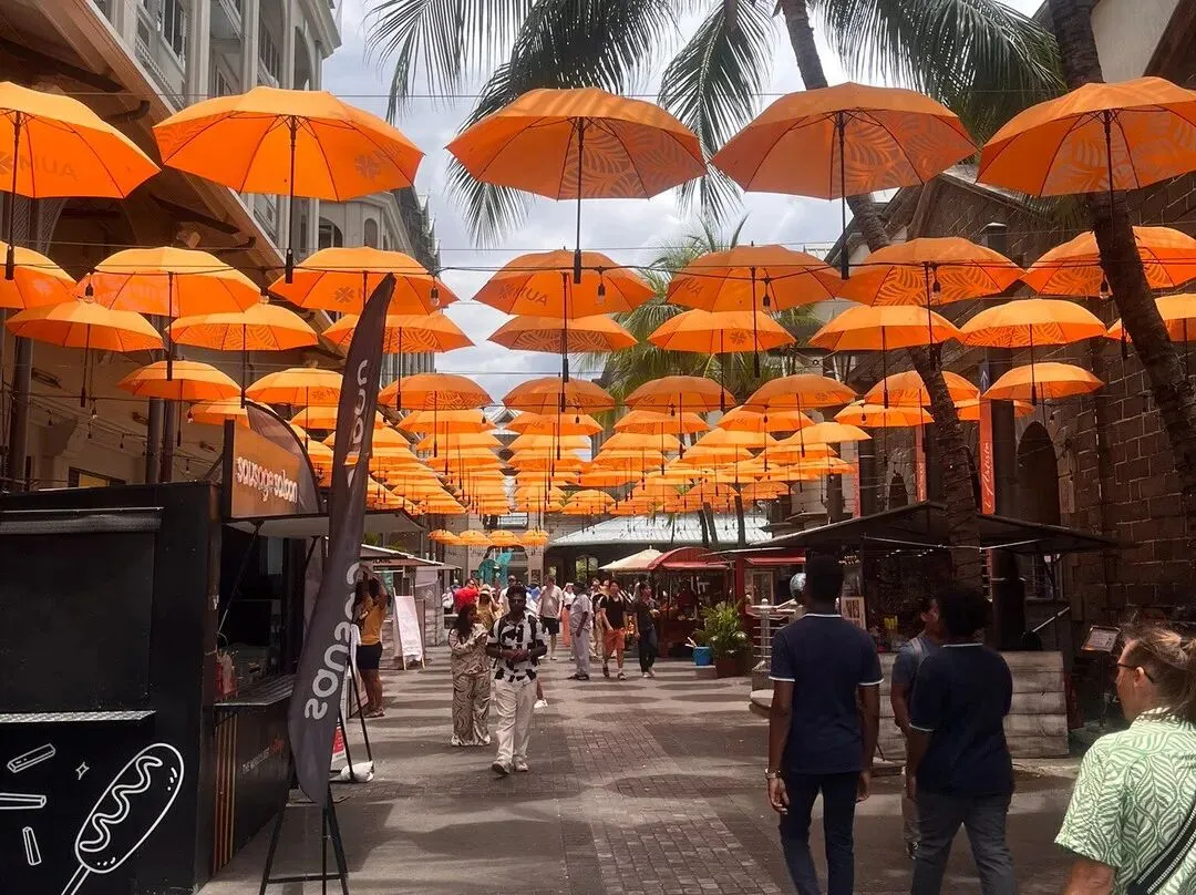 (6)蔻丹广场(Le Caudan Waterfront)位于美丽的路易港,享有路易港海港的壮丽景色,是一个集购物、餐饮、休闲、娱乐、文化体验为一体的开放式特色商业街区。其于1996年11月25日落成,以18世纪法国探险家Jean Dominique Michel de Caudan的名字命名。该广场历史悠久,建在火药库、仓库、码头和造船厂等历史遗址上。蔻丹艺术中心是毛里求斯的地标性艺术和会议场所,剧院舒适和精心的设计,先进的音响和灯光设施使其成为毛里求斯举办美术展览、音乐会、歌剧、舞蹈、会议等活动的艺术中心。美食广场曾经是印度洋第一个气象和天文观测站。蓝便士博物馆所在建筑是前码头办公室。广场中心有一片用五颜六色的雨伞搭起来的区域,是游客拍照打卡的著名景点之一。