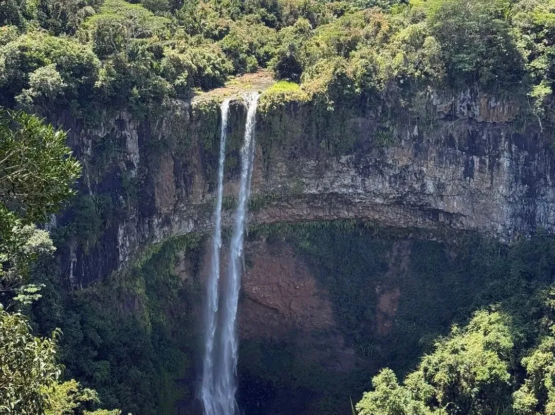 (2)夏玛尔瀑布(Chamarel Waterfall)位于毛里求斯西南部地区,邻近当地著名的七色土景区。它是毛里求斯最大落差的瀑布,落差高度堪比美国自由女神像。从远处观望,瀑布自悬崖凌空而下,十分壮观。景区内有高低两个观景台,较高的观景台可以拍到瀑布的全景。该瀑布由两条河流会合而成,落差有100米的神奇夏玛尔瀑布从原生植被中流淌出来,周围绿色植物繁荣,群山连绵起伏,环境幽静,呈现出一派原始自然风光。您在欣赏瀑布的时候还会看到一些野生猴子,由于这里经常会有猴子出没,所以不要将个人物品放在无人看管的地方。