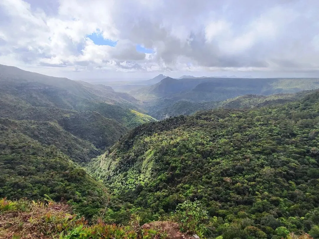(4)黑河谷国家公园位于毛里求斯西南部,占地67.54平方公里,它是毛里求斯唯一的国家公园,包括潮湿的高地森林、干燥的低地森林和沼泽荒原等区域。 其内的黑河山是毛里求斯的最高峰,黑河山大瀑布完全是由雨水汇集而成,雨量大时,瀑布分两支,雨量小时,便只有一支,瀑布的落差很高,景色非常壮丽。 公园里最知名的景观就是黑河山大瀑布和七色土。公园有好几个入口,有的是专门徒步行走的路线,园内设计有5公里、10公里的徒步路线,很适合徒步爱好者。