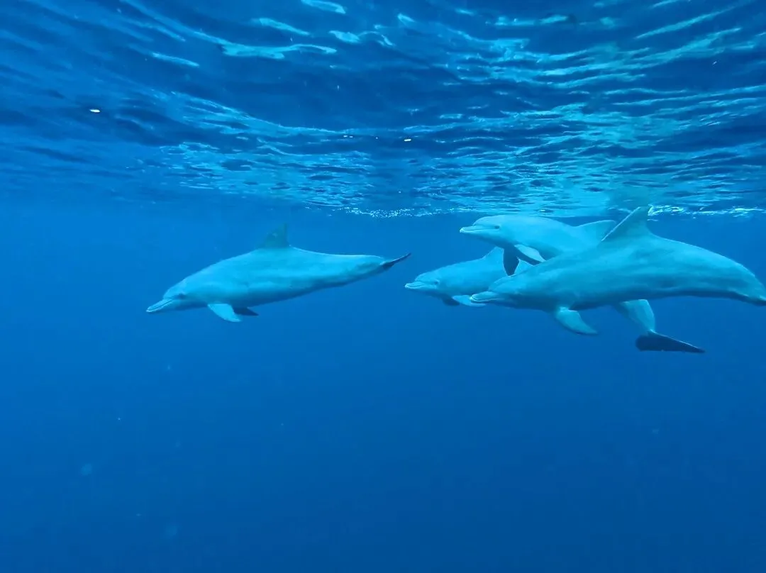 海豚湾位于塔马兰小镇,这里被高山环绕,景色优美。如果在毛里求斯出海的话,最大的乐趣莫过于看海豚,毛岛是世界上近距离接触宽吻海豚的绝佳之处。看海豚一定要乘坐快艇,在发现海豚的第一时间快艇转头或跟上,可以近距离的看到海豚。宽吻海豚是最常见的一种海豚,这些灰色的小家伙生活在温暖的水中,因为拉长的吻部而命名。它们游速很快,据说海豚的游泳速度一般是每小时5到11公里远,最快可达到每小时35公里。不过如果保持高速的话,只能持续很短时间,宽吻海豚通过头顶的喷水孔来呼吸,因此每过5到8分钟要浮出水面来换气。