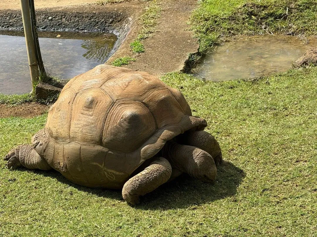 (3)龟园可以近距离观察巨型陆龟,该物种原产于塞舌尔的阿尔达布拉,体长可达1米,平均寿命超过150年。据说公园里最古老的巨型陆龟死于250岁。阿尔达布拉是世界第二大陆龟物种,是本土的穹顶和鞍背巨龟的近亲,后者自18世纪初以来已在毛里求斯灭绝。雄性和雌性可以通过腹部的形状来区分。雌性腹部平坦,雄性腹部空心。