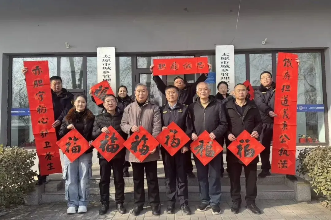 迎新送福写春联活动,是太原市老年书画家协会长期致力于发扬、传承中华传统文化的核心载体之一,活动现场墨香满溢、吉联频出,既延续了翰墨传情的文化传统,也为执法大队工作人员送去了浓浓的新春暖意与美好期许。
