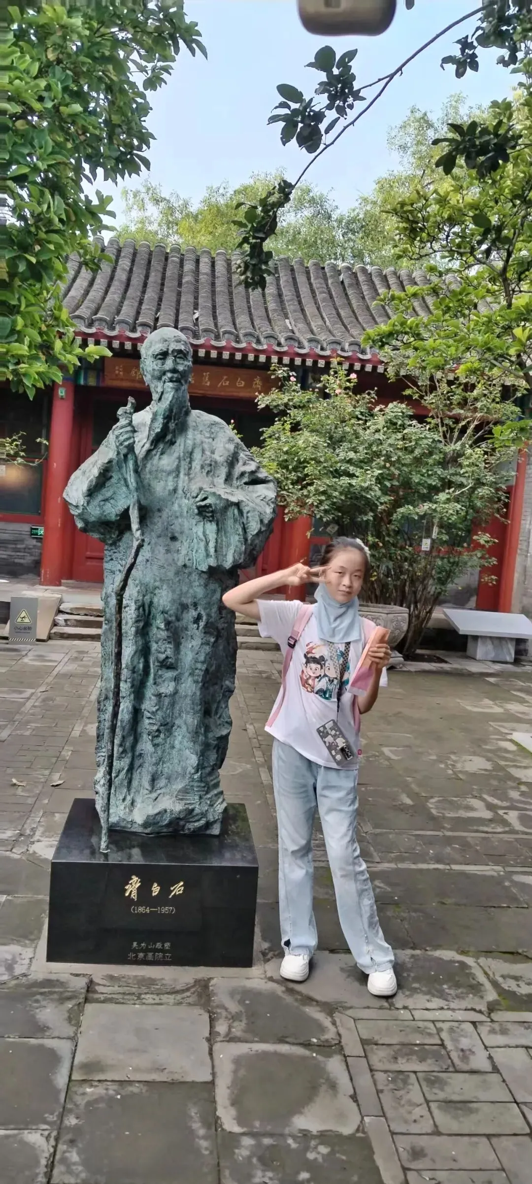 16日 下午火车三点到北京,气候还好,23-35度,我们第一站住到了距离办事较近的朝阳区靠近地铁的全季酒店(燕莎三元桥店)。稍休整,五点多兴奋地背着背包出发,地铁到了南锣鼓巷。南锣鼓巷跟网传的一样商业化严重,闹哄哄的,但是架不住孩子爱盖打卡章的热情。 我们穿过南锣鼓巷,参观了齐白石旧居和非遗博物馆。大师的旧居是典型的老北京四合院,回字形,进门是廊壁,院里种了石榴树和桂花树,两侧是雕栏走廊,地面是彩绘的地砖,透着浓浓的老北京味。非遗博物馆非常小,但是墙上挂着末代皇帝溥仪小时候翘着二个小辫辫骑马的照片......