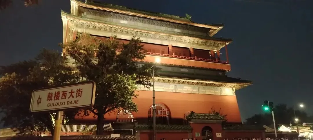 小哥的羊肉串好吃,40元二大串送一杯绿豆汤。北京的羊肉特别嫩且没有膻味。 沿着什刹海边走,四通八达的巷子,各式各样的店铺,人越走越多。天慢慢暗下来了,我们准备出巷,去看钟楼和鼓楼夜景。果然也只看到了夜景。人太多了并且夜已深,八点回。