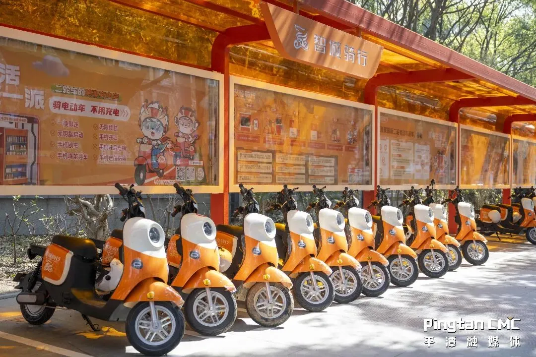 位于龙凤路的“智城骑行”二轮电动车租赁站点内,橙色电动车整齐停放,来自浙江的游客张天正扫码解锁车辆,准备前往景区游玩。“骑行既能自由把控游玩节奏,又不用担心停车问题,换电点也多,完全不用愁续航。”张天正说。