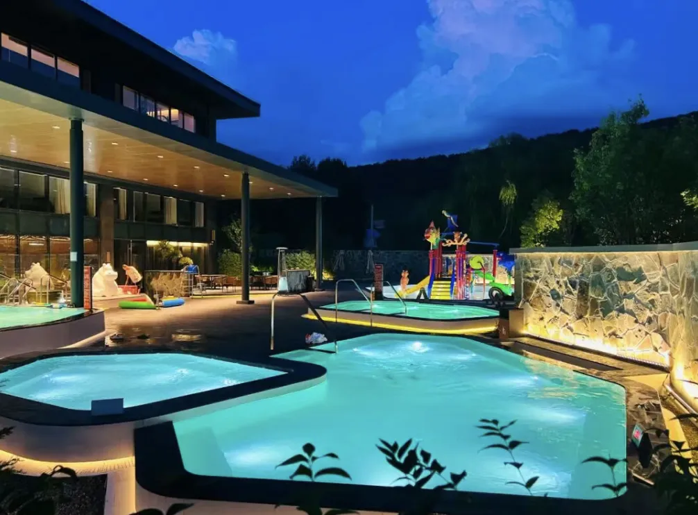针对家庭客群与长期度假需求,酒店的配套同样周全。长租公寓将度假与居家融为一体,齐全的生活设施让长期居住的客人也能感受到家的温馨;户外儿童戏水区域安全又有趣,孩子们可以在水中尽情嬉戏,释放童真活力,让亲子时光充满欢声笑语。而户外天体泡池更是酒店的一大亮点,夜幕降临后,躺在自然怀抱中,仰望漫天星空,感受温泉水的温润流淌,心灵仿佛得到净化与升华,这便是城市微度假最惬意的放松体验。