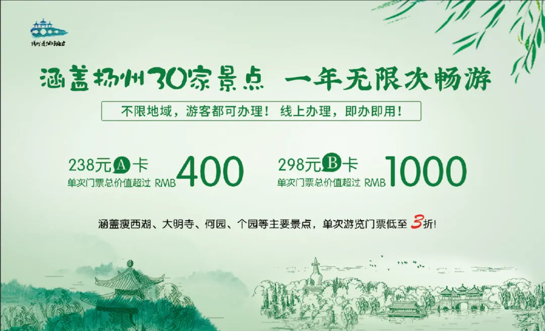 想知道在扬州怎么“玩”最划算么?小编强烈安利办理一张扬州旅游休闲卡(A/B卡),一卡在手,扬州热门景点全年无限次任你畅游!本地人外地人都能办哦!【详细攻略】