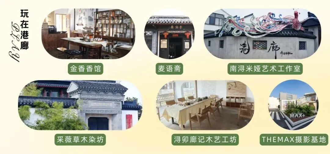 一路走,一路看,一路交流。港廊的美好,是古韵与烟火共生、传统与潮流碰撞的多元模样,这里有解元厅的中式美学,有廊街的松弛烟火,有染坊的丝绸温润,有好看的服饰与出片的打卡点,藏着年轻人喜欢的好逛、好玩、好买,也藏着江南古村独有的温柔。