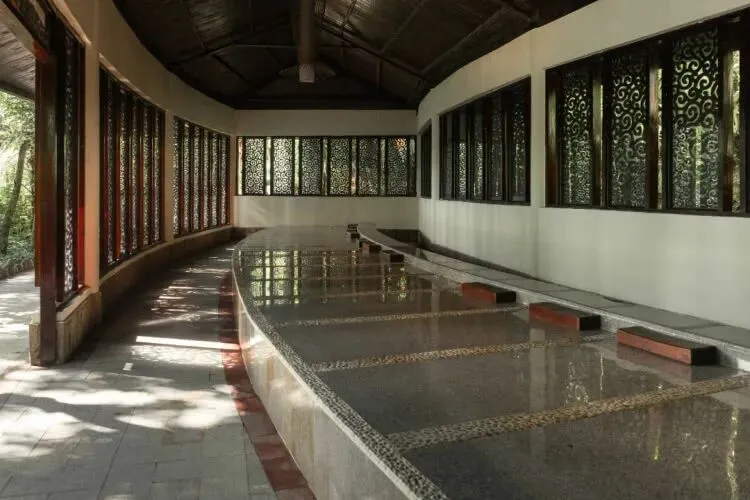 “灵山多秀色,空水共氤氲”,温泉水清,亭榭辉映成趣,光是赏景,就褪去三分疲惫。