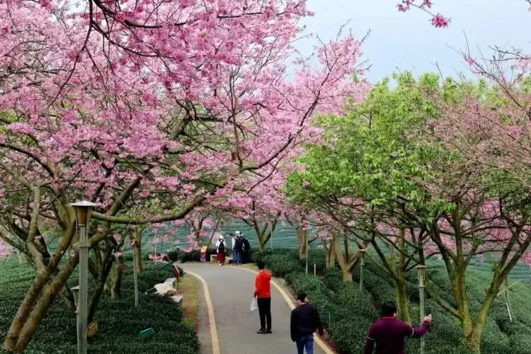 春遇永福,花团锦簇!待到开春樱花即将绽放,走进樱花园,仿佛置身于一个粉色梦境,朵朵娇艳的樱花艳压枝头,摇曳生姿,煞是好看!您还可以沿着景区小道漫步,欣赏那层层叠叠、绿意盎然的茶山,感受大自然的宁静与和谐。