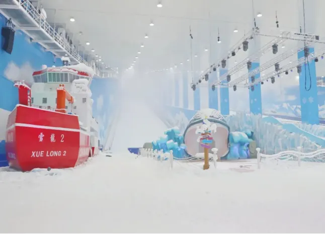 馆内分为娱雪区和滑雪区。娱雪区的南极科考站、南极乐园、“雪龙号”科考船、破冰之旅等娱乐项目招人喜爱,既能拍照打卡,又能互动娱乐;滑雪区有初级、中级、高级三条赛道,还有儿童雪道可供游玩,不同滑道满足不同人群的滑雪需求。
