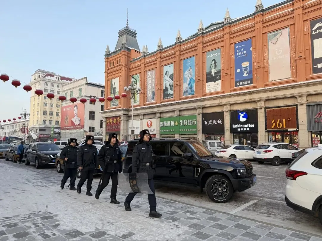 漠河市公安局以警情研判为核心、精准调度为抓手,梳理近三年警情、外来游客车辆等数据,对警情总体态势、差异化特征等方面进行深度分析,创新巡逻防控举措,从季节、时间、区域三个维度统筹调度警力,采用“无人机巡查+车辆机动巡+徒步巡+定点值守”多维巡防模式, 整合交警、派出所、环食药侦、反恐怖与巡特警等警种力量对景区、“两站一场”、鼎峰商圈、林区、国省道、市区主次干道及支路、重点部位等地进行巡防,各警种按照调度指令,分工协作、密切配合,形成了“情指中枢统一指挥、多警种协同作战、全时域无缝防控”的工作格局。