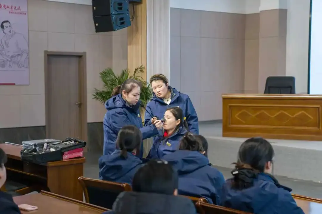 培训现场,氛围热烈而专注。美妆讲师结合景区服务场景从妆容定位、底妆技巧、眉眼修饰到唇色选择,进行了细致入微的讲解与实操演示。