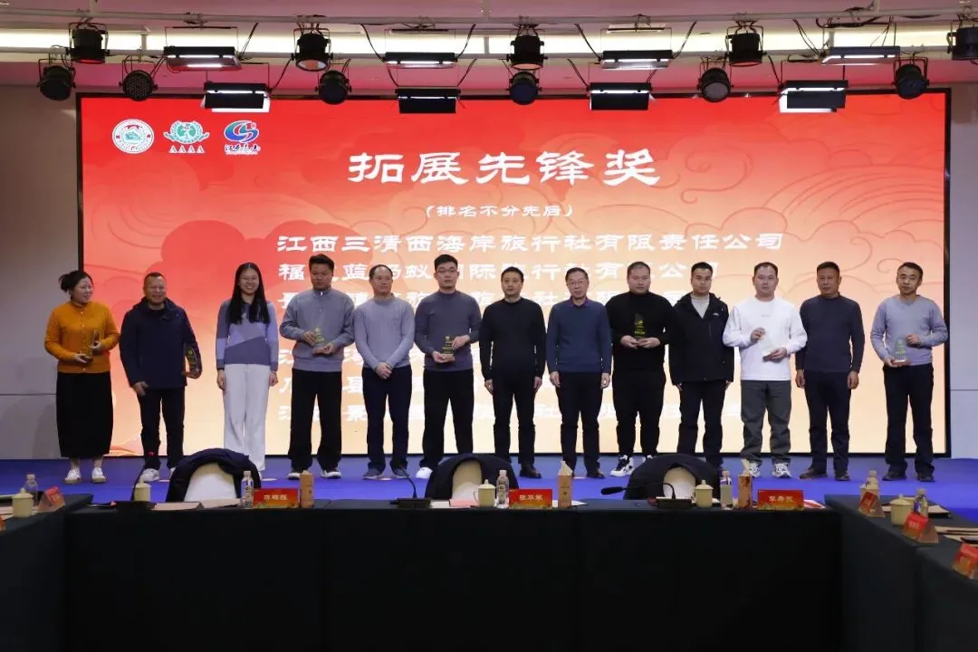 交流环节气氛坦诚而热烈,十余家旅行社代表踊跃发言,既分享了与灵山同成长、共收获的动人故事,也围绕产品设计、渠道深耕、服务细节等带来了来自市场一线的真知灼见,思想的碰撞激荡出无数合作火花。随后,大会发布了2026年度合作政策,表彰了在过去一年中贡献突出的29家合作单位,分别授予“杰出贡献奖”、“优秀合作奖”和“拓展先锋奖”。